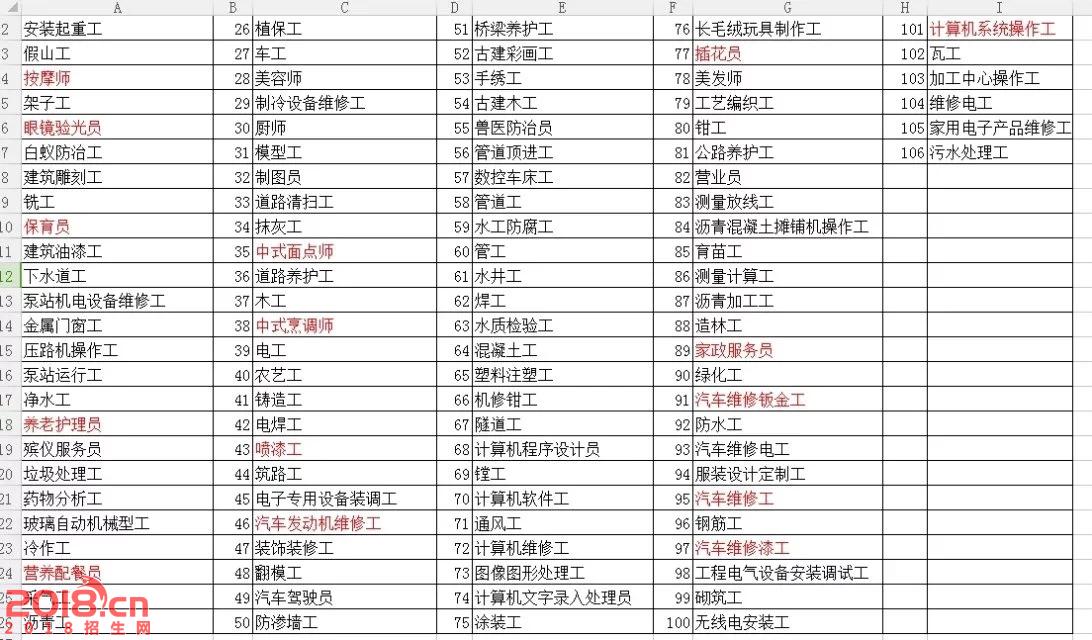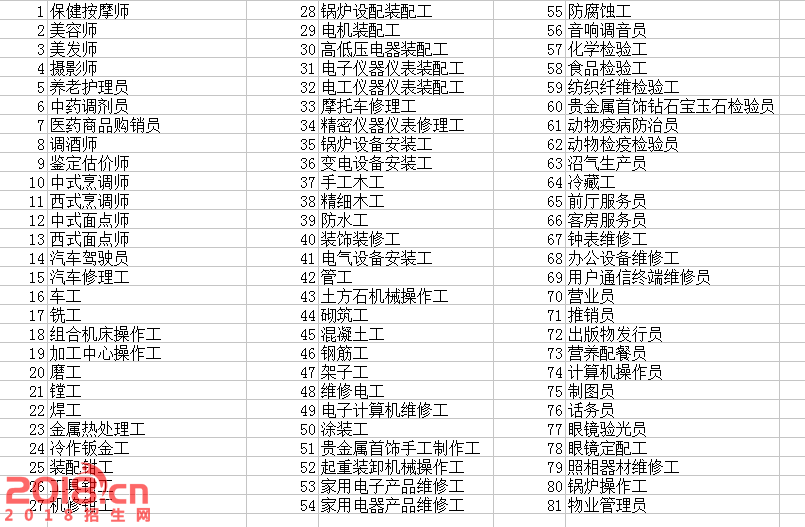 人保部钳工焊工二手车鉴定评估师保育员汽车维修工