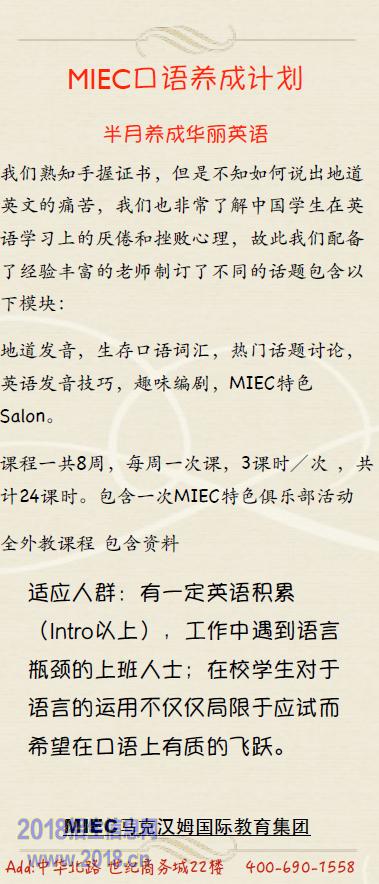 半月养成华丽英语 我们熟知手握证书,但是不知如何说出地道英文的痛苦,我们也非常了解中国学生在英语学习上的厌倦和挫败心理,故此我们配备了经验丰富的ABC老师,通过地道美式发音,生存口语的训练从而达到让学生能开口就说养成计划