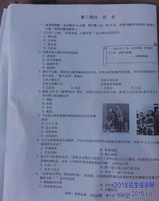 2015年广东汕尾中考历史试题(图片版)