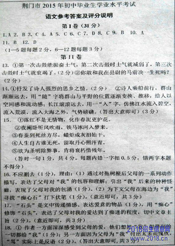 2015年湖北省荆门市中考语文试题(word版,含答案)