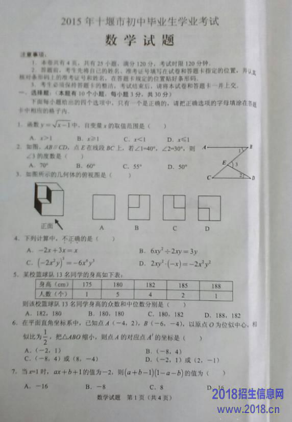 2015年湖北十堰中考数学试题(图片版)
