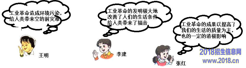 图15所示内容是王明、李建、张红同学对“三次工业革命与人们生活的关系“的评价。