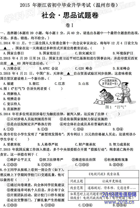 2015年浙江温州中考思想品德试题及答案(图片版)