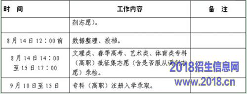 8月13日:文理类专科(高职)批征集志愿春季高考,艺术类,体育类专科(高职)批征集志愿(含是否服从调剂志愿)。