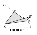 10.如图,Rt△ABC中,∠ACB=90º,AC=3,BC=4,将边AC沿CE翻折,使点A落在AB上的点D处;再将边BC沿CF翻折,使点B落在CD的延长线上的点B′处,两条折痕与斜边AB分别交于点E、F,则线段B′F的长为 ( ▲ )