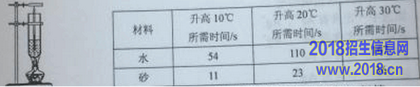 19.探究“比较不同物质的吸热能力”的实验中,在两支相同的试管中分别加入水和砂。分别用同一酒精灯加热(如图所示),实验数据记录如下表。