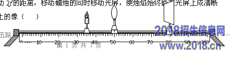 5.如图所示,凸透镜焦距为f,烛焰在图示位置时恰能在光屏上成清晰的像。现将蜡烛沿 主光轴向左移动2f的距离,移动蜡烛的同时移动光屏,使烛焰始终能在光屏上成清晰的像,则光屏上的像( )