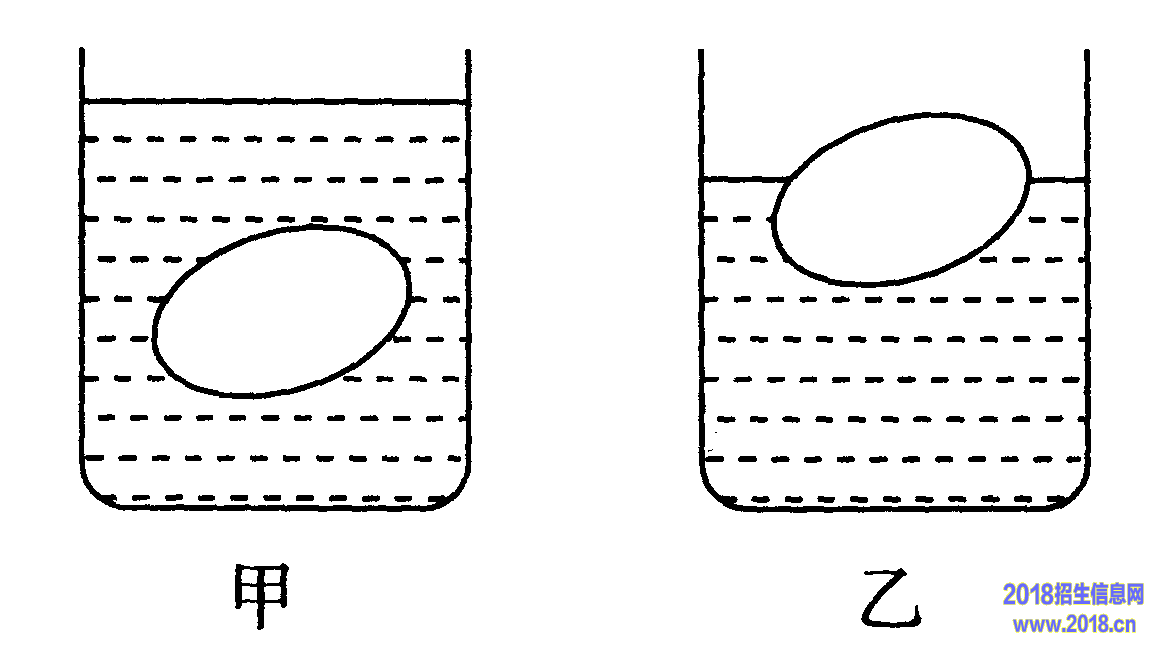8.在水平桌面上,有两个相同的圆柱形容器,内盛相等质量的盐水。将同一个鸡蛋分别放入其中,鸡蛋静止时如图所示。鸡蛋在甲、乙两杯中所受浮力分别为F1和F2,盐水对容器底部压强分别为p1和p2,则 ( )