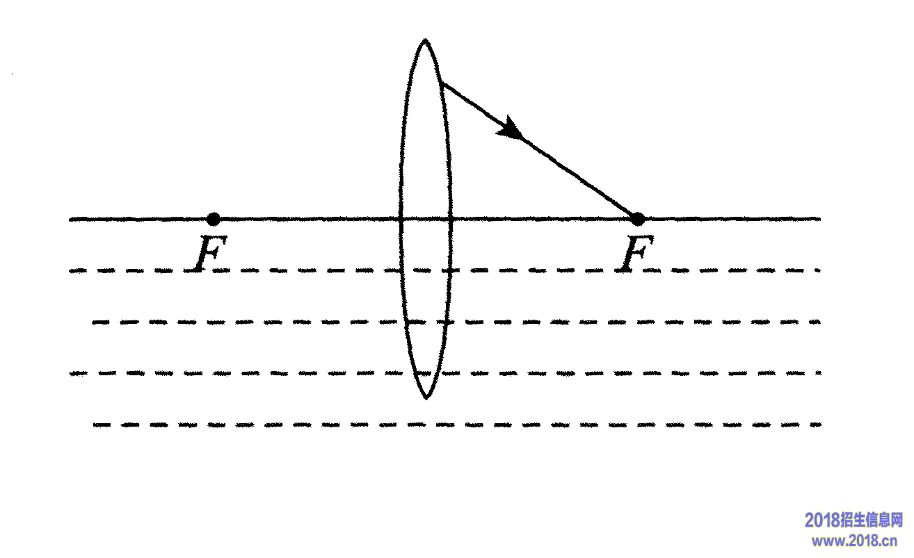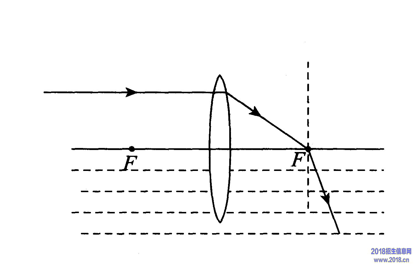 15.如图所示,一个凸透镜的主光轴与平静水面重合,F为凸透镜的焦点。请画出图中光线在凸透镜左侧的入射光线以及图中光线进入水中的折射光线。