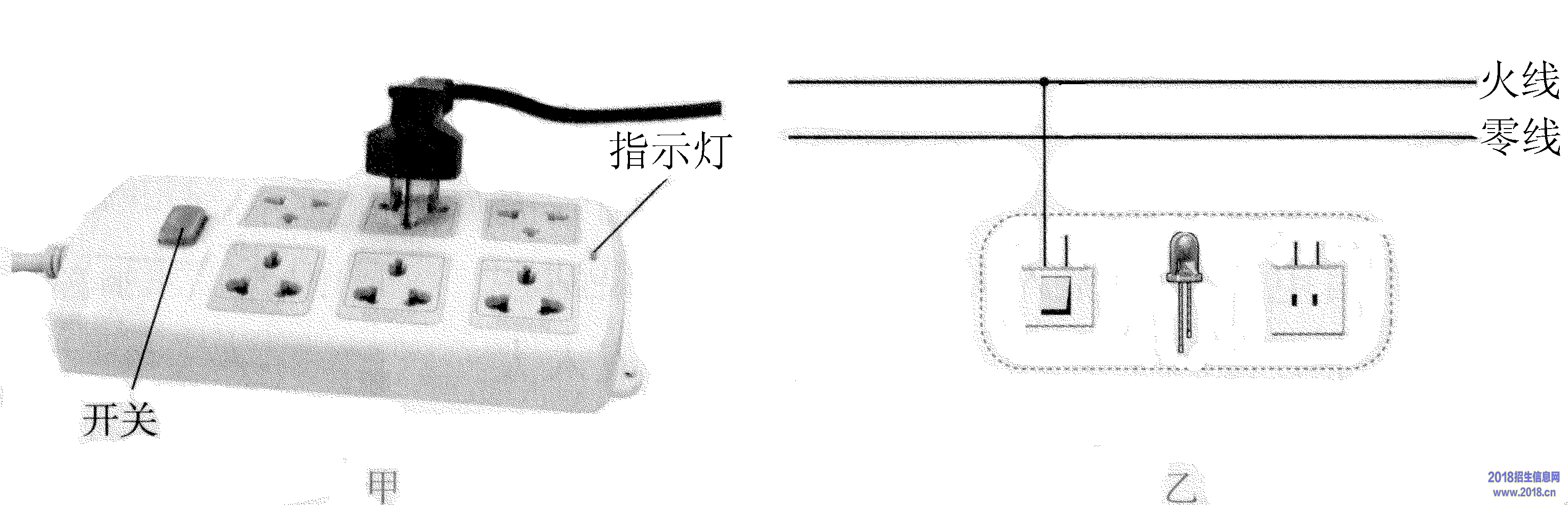 17.图甲所示是家庭中常用的一种插线板。小宇同学在使用中发现:开关断开时指示灯不