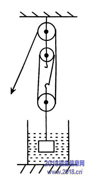 20.为了模拟水中物体被打捞的情境,同学们课外作如下探究:如图,用滑轮组将重200N的物体从底面积为400cm2的圆柱形容器中提起,容器中水面由90cm降到70cm。已知每个滑轮重均为20N(不计绳重、水的阻力及滑轮与中心轴间的摩擦)。