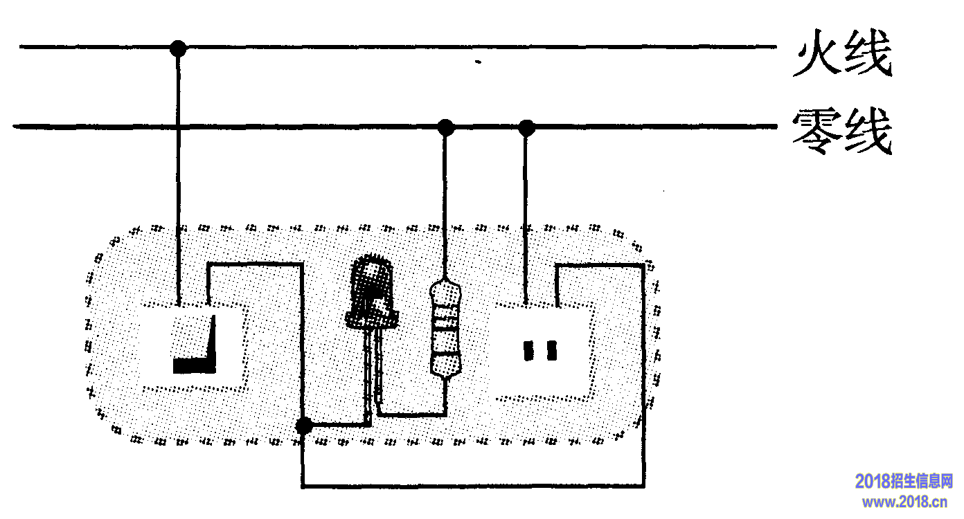 亮,插孔不能提供工作电压;开关闭合时指示灯亮,插孔能提供工作电压;如果指示