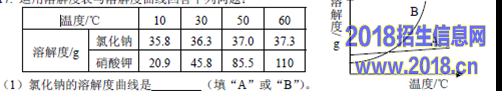 (1)氯化钠的溶解度曲线是 (填“A”或“B”)。