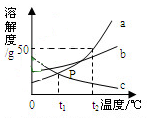 【解析】(1)P点的是a、c两物质的溶解度曲线的交点,P点的含义是:在t1℃时,a、c两物质的溶解度相同。
