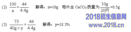答:该品牌补钙剂每片含的CaCO3质量为0.5g,该盐酸中溶质的质量分数是18.3%