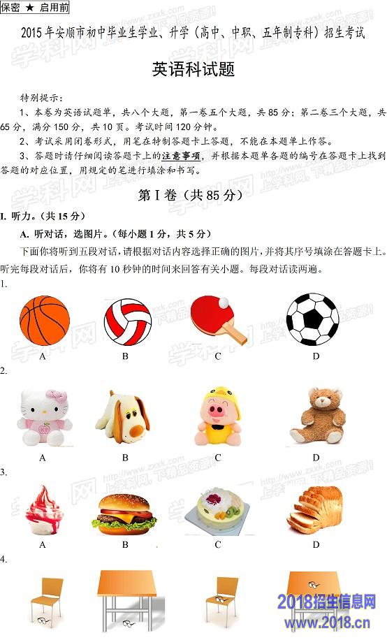 2015年贵州省安顺市中考英语试题及答案(图片版)
