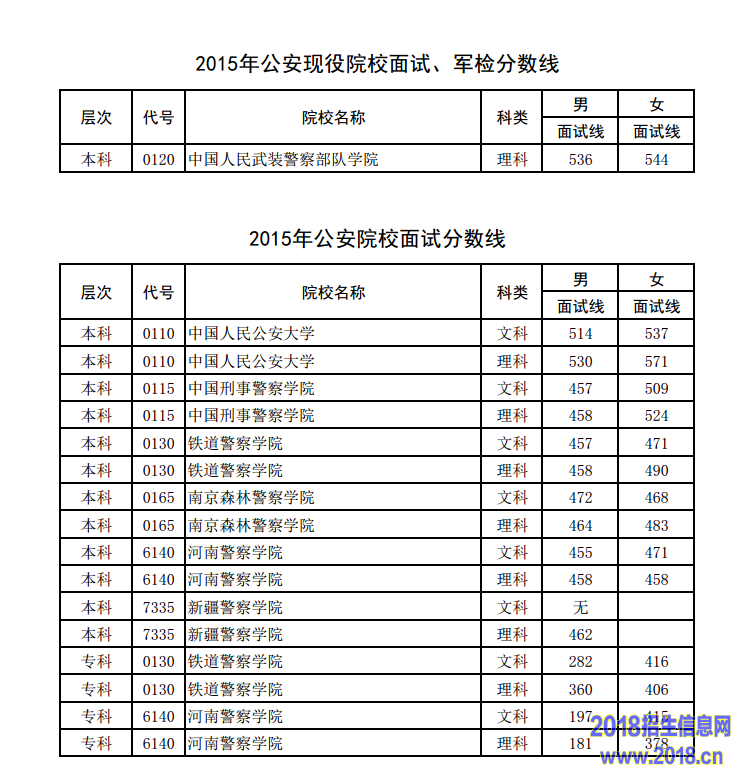 2015年河南省普通高招公安及公安现役院校面试分数线