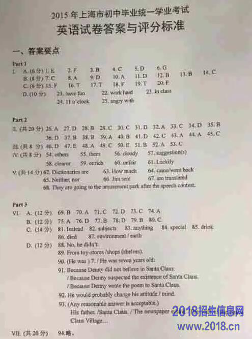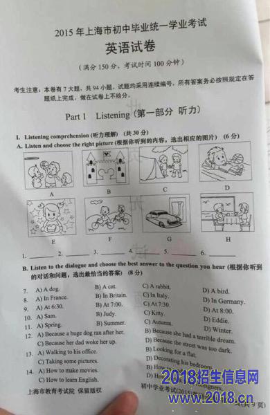 2015年上海市中考英语试题(word版试题,含答案)