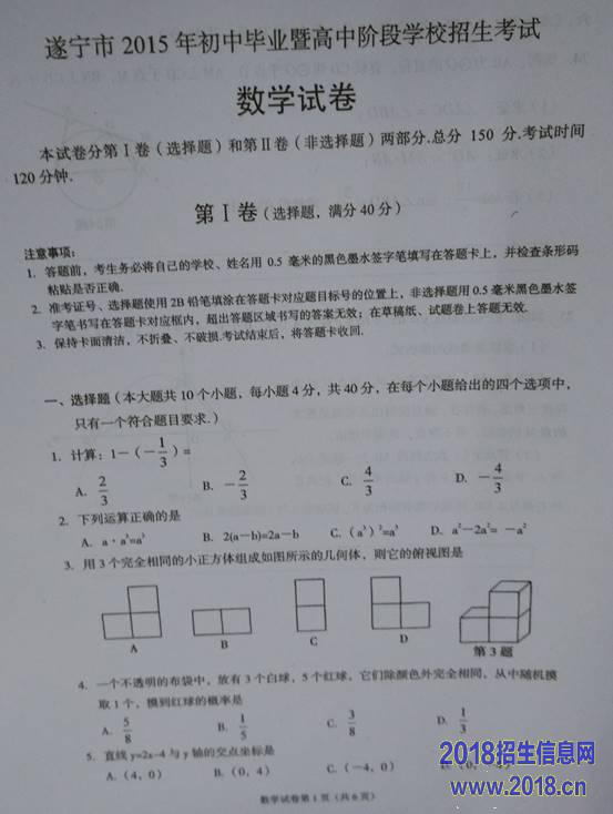 2015四川遂宁市中考数学试题(图片版)