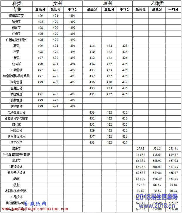 2014年我院文科最高分499,最低分490,平均分492.9;理科最高分437,最低分422,平均分426。