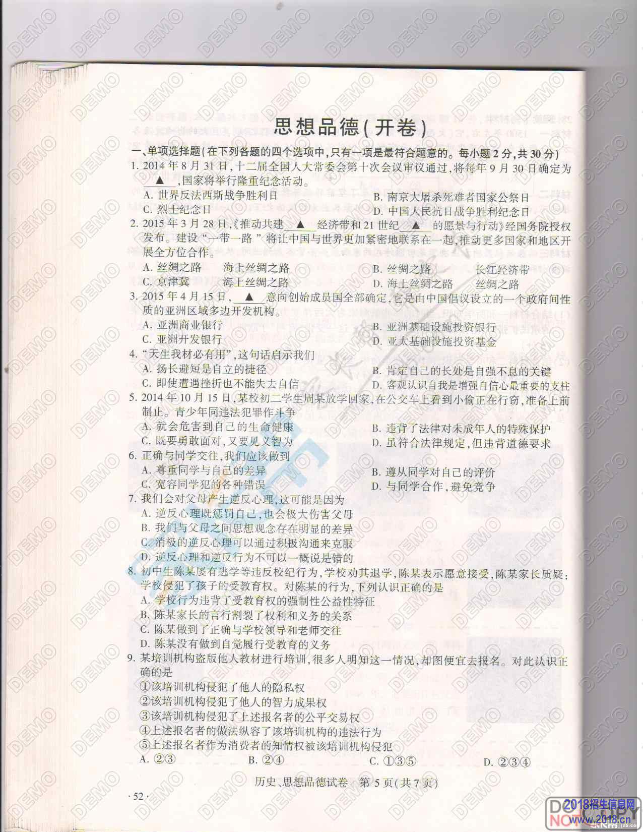 2015年江苏南京中考政治试题及答案(图片版)