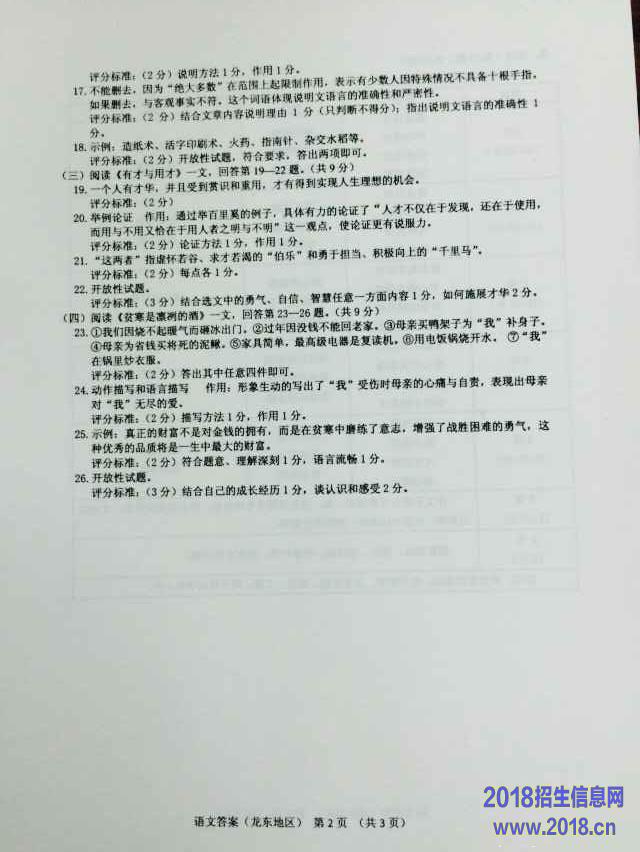 26.结合你的成长经历,谈谈对文章的认识和感悟。(3分)