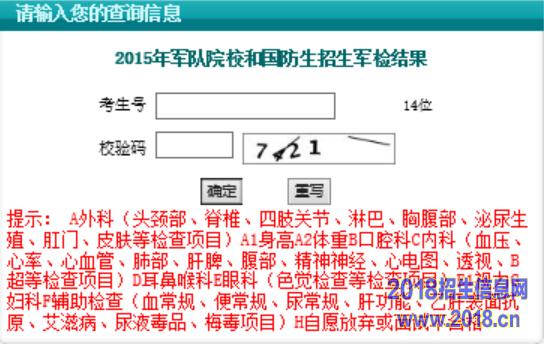 提示: A外科(头颈部、脊椎、四肢关节、淋巴、胸腹部、泌尿生殖、肛门、皮肤等检查项目)A1身高A2体重B口腔科C内科(血压、心率、心血管、肺部、肝脾、腹部、精神神经、心电图、透视、B超等检查项目)D耳鼻喉科E眼科(色觉检查等检查项目)E1视力G妇科F辅助检查(血常规、便常规、尿常规、肝功能、乙肝表面抗原、艾滋病、尿液毒品、梅毒项目)H自愿放弃或面试不合格