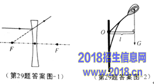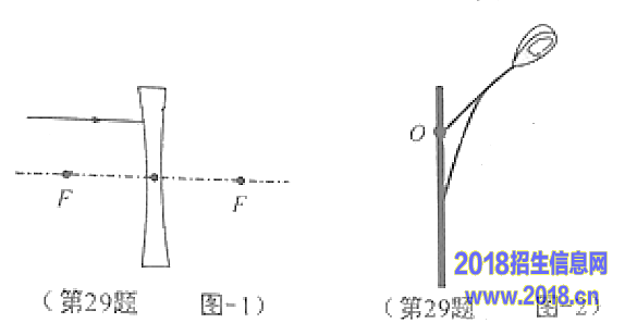 29.(4分)⑴请在图-1中画出入射光线经凹透镜后的折射光线。
