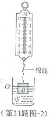 ⑶为验证猜想三,小丽选用了与物体A密度不同的物体B进行实验,她将物体B逐渐浸入水中,容器中的水面上升至图示O位置时,发现棉线松弛,弹簧测力计示数为0,如图-2所示。取出物体B的,小丽又将物体A缓慢浸入水中,她在水面上升到____________(选填“O点之上”、“O点”或“O点之下”)位置时,读取弹簧测力计的示数,这样做是为了控制_______________相同,以便判断浮力的大小与物体的密度是否有关。