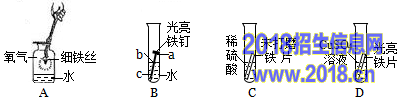 19.(5分)铁是生产、生活中应用很广泛的一种金属。下列是与铁的性质有关的部分实验图,请回答下列问题。