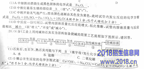 20.(4分)工业上用纯碱和石灰石为原料制备烧碱的简要工艺流程如下图所示,请回答。