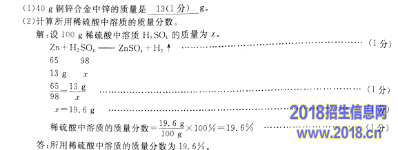 可能用到的相对原子质量:H—1 O—16 S—32 Zn—65