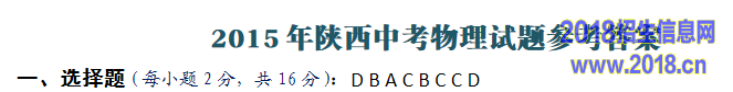 2015年陕西省中考物理与化学试题(WORD版,含答案)
