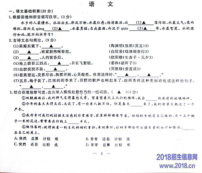 2015年浙江省绍兴市中考语文试题(扫描含答案)