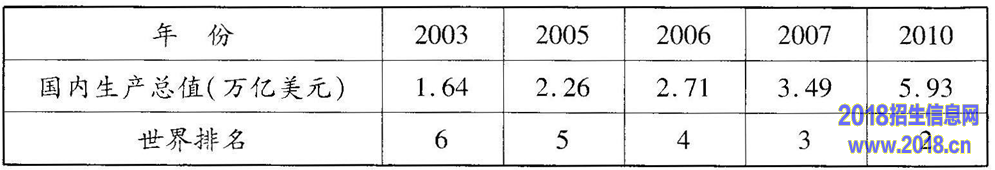 12.读下表:分析2003年以来中国国内生产总值及世界排名变化的最主要原因
