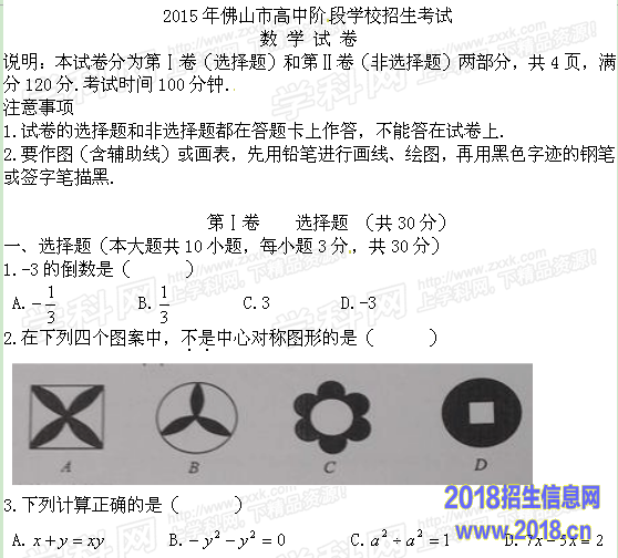 2015年广东省佛山市中考数学试题(图片版,无答案)
