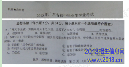 2015年广东省揭阳市中考政治试题(扫描版,含答案)