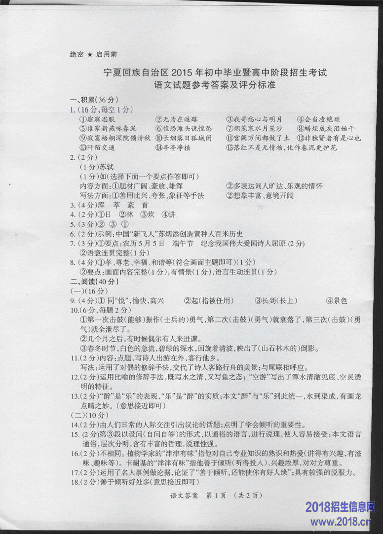 2015年宁夏回族自治区中考语文试题(word版,含答案)