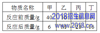 14. 甲、乙、丙、丁四种物质,它们在密闭容器中反应前后质量的变化关系如下表所示。则下列说法错误的是