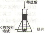 ⑷如图所示,向放有镁条的试管中滴加稀盐酸后,锥形瓶中C的饱和溶液变浑浊。请解释原因 。