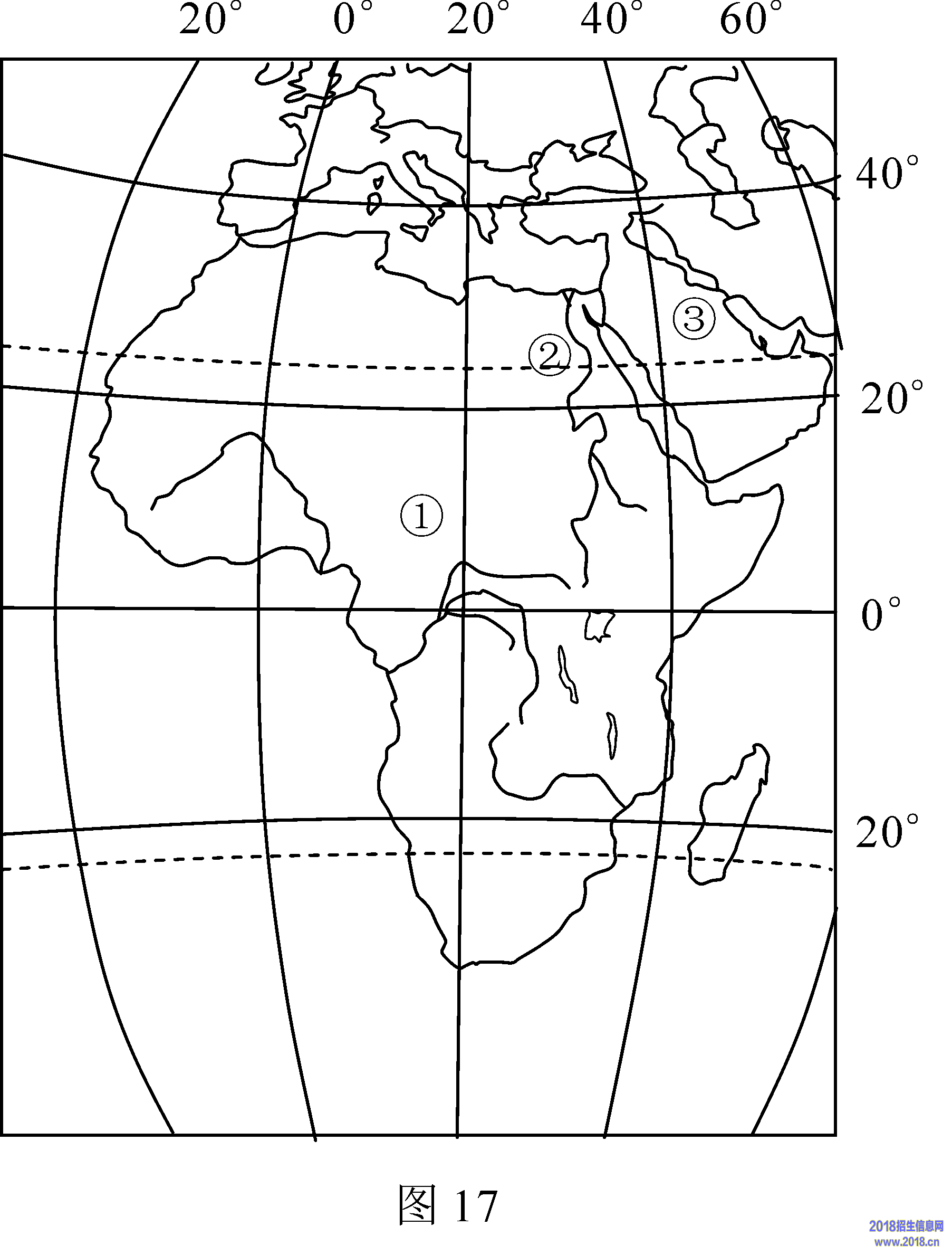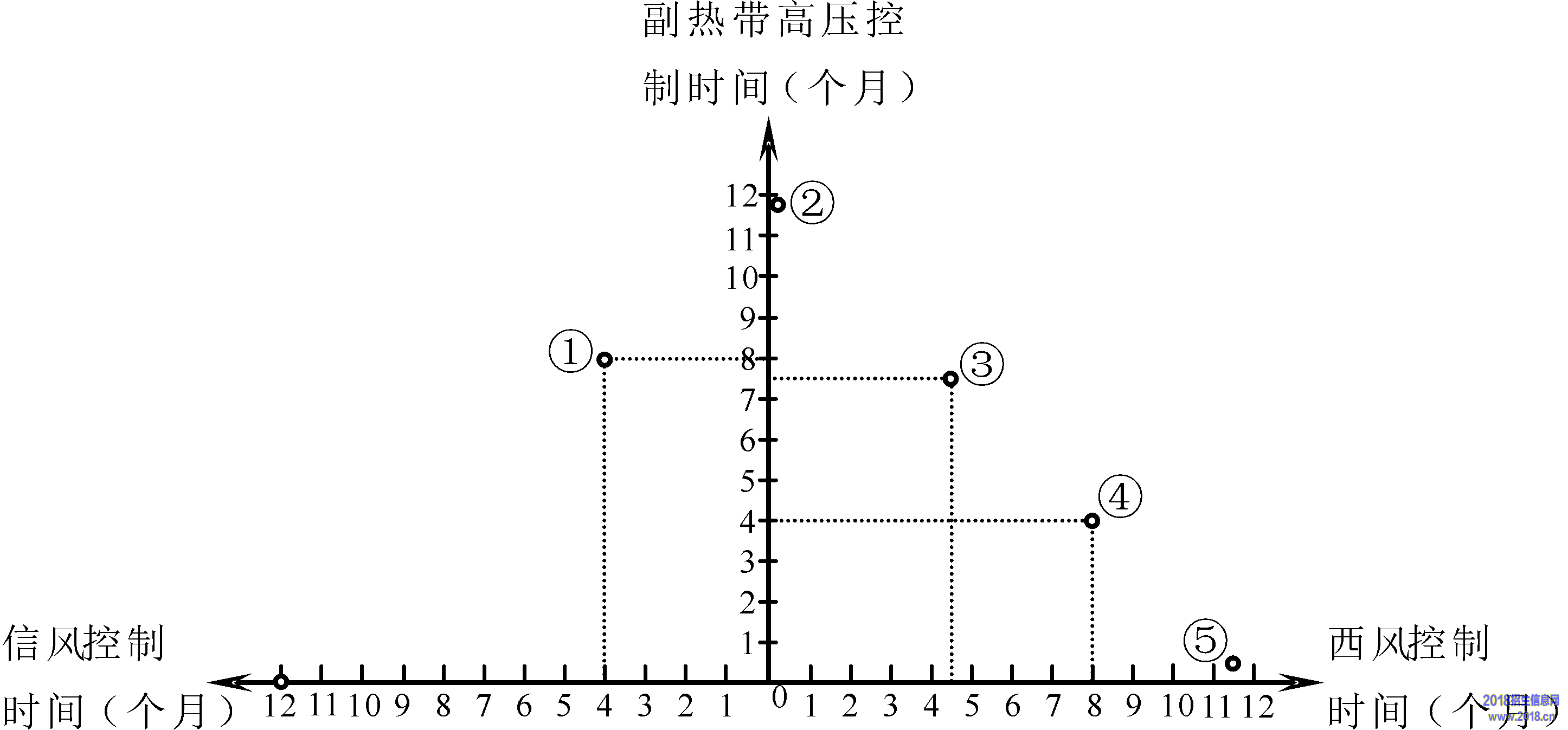 (2)数码①代表的大洲气候类型南北对称分布的主要原因是 。