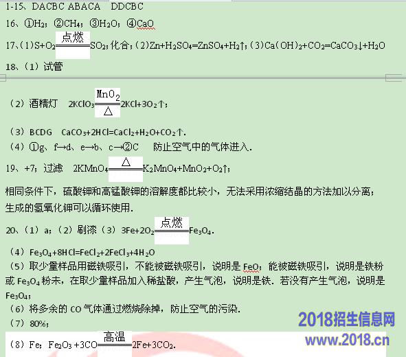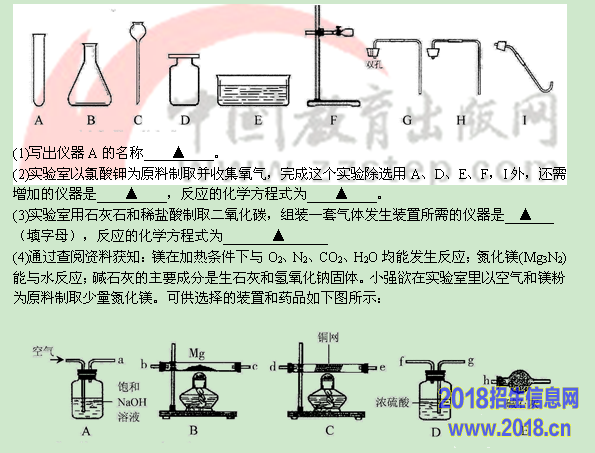 18. (8分)根据所学的知识并结合下列仪器,回答有关问题: