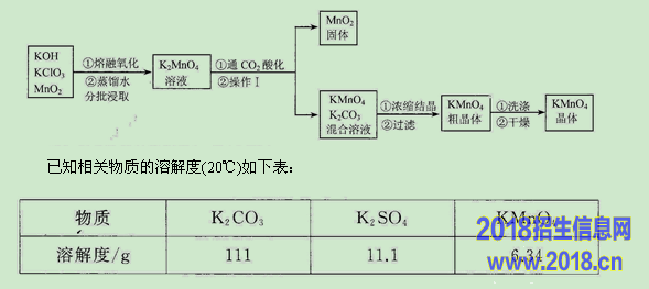 19. (5分)工业上以高纯度的二氧化锰为原料制备高锰酸钾的主要流程如下: