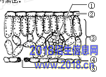 (1)上表皮 (2)③