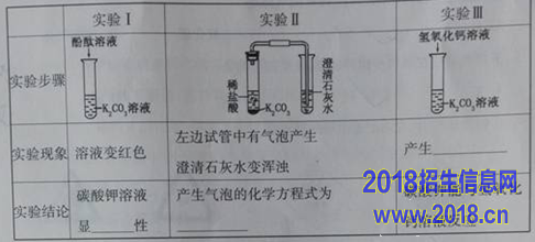 19.碳酸钾是农家肥草木灰的主要成分,将它和化肥一起施用,会减少对环境的污染。为了帮助父母合理选择化肥,李明决定对碳酸钾的化学性质进行探究。
