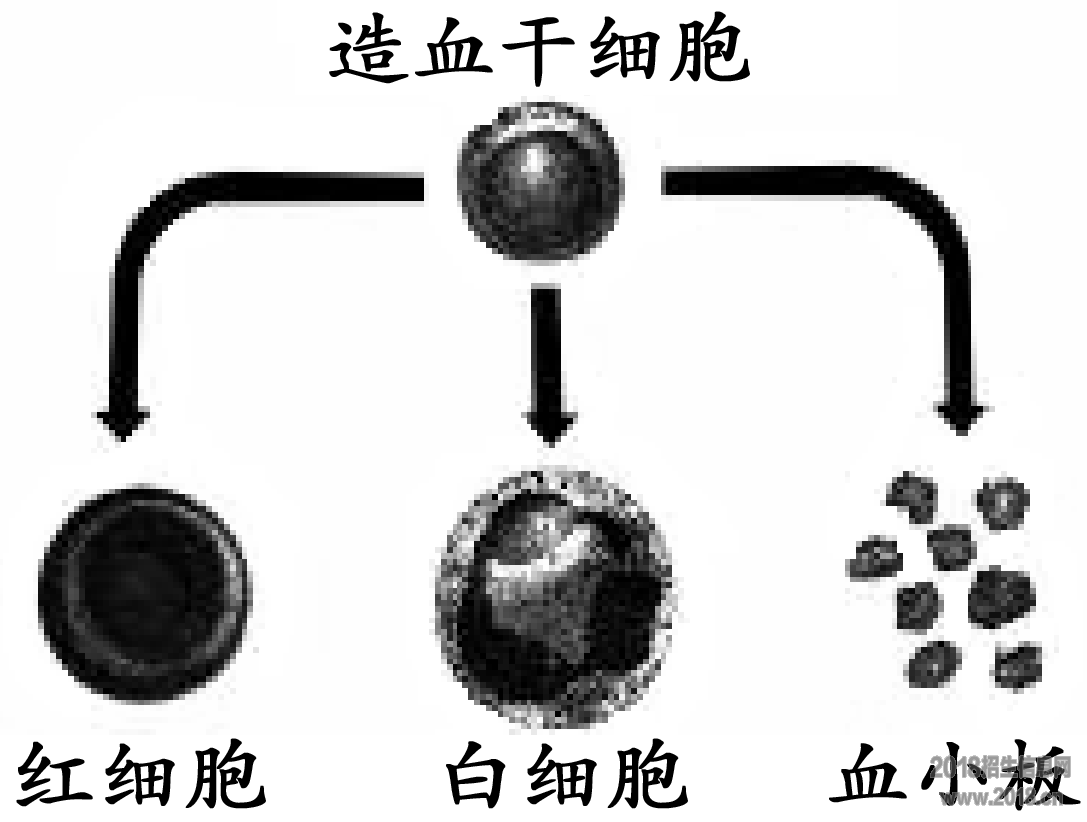3.骨髓移植是治疗白血病的最佳方法,因为健康人的骨髓中有大量的造血干细胞,可不断产生新的血细胞(如右图),这一过程称为细胞的