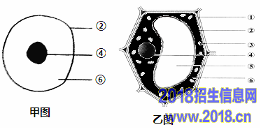 31.右图是动物细胞和植物细胞的结构模式图,椐图回答问题:图中 图是动物细胞,对比甲、乙两图可以看出,植物细胞除具有与动物细胞相同的基本结构外,一般还具有细胞壁、液泡、 。