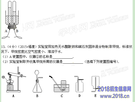 (4)选择气体的发生装置时,应该考虑的因素有: .甲烷是最简单的有机物类的气体,实验室常用加热醋酸钠与氢氧化钠固体混合物来制得.实验室制取甲烷应选用的发生装置是(填序号) .