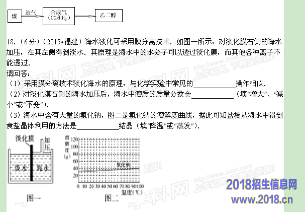 17.(4分)(2015•福建)我国具有丰富的煤炭资源,煤制取乙二醇的产业化发展已列入我国石化产业调整和振兴规划.由煤制取乙二醇的流程示意图如图.
