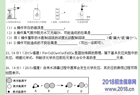 12.(8分)(2015•福建)水是人类生活中不可缺少的物质.
